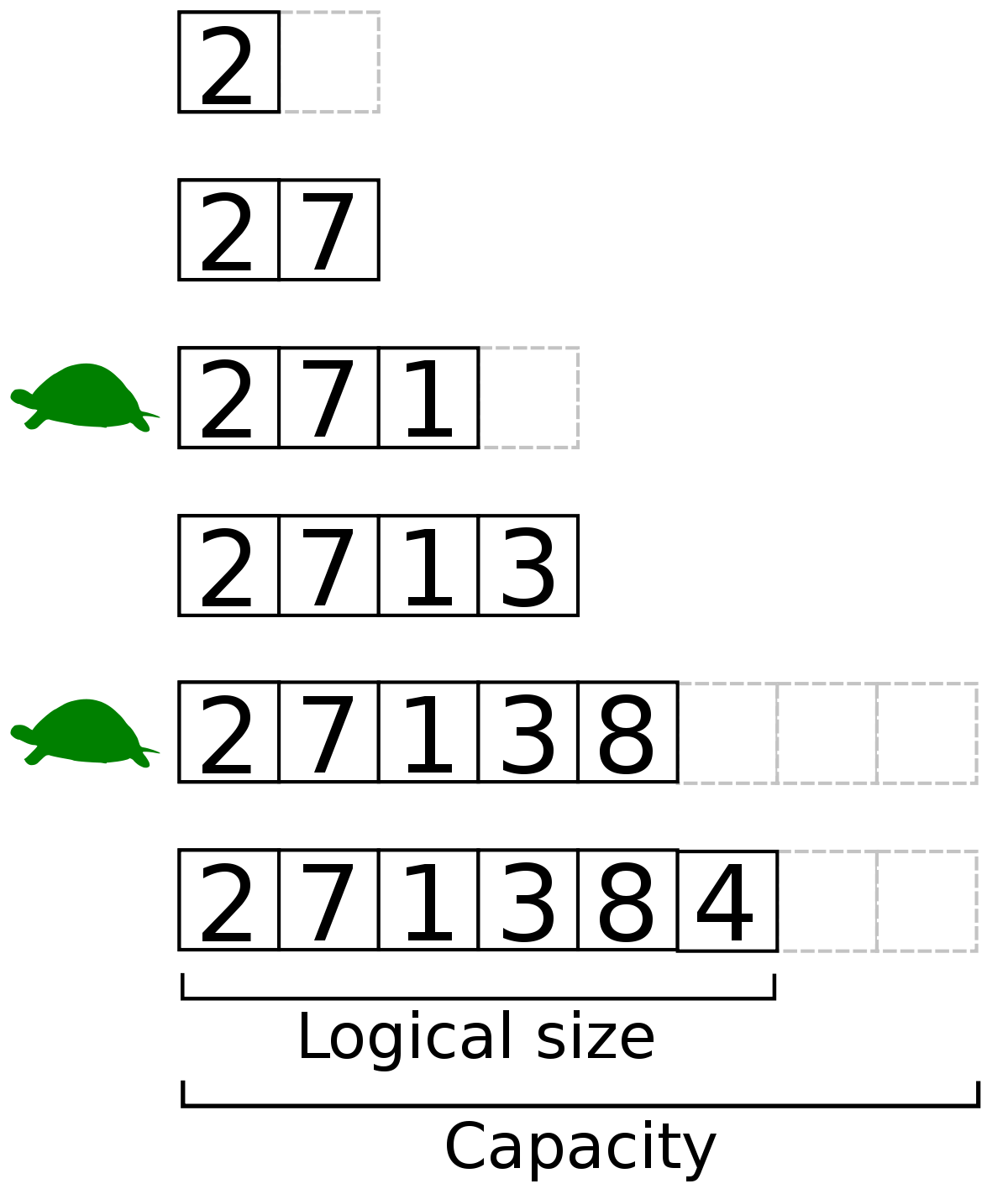 - 단점 : 추가/삭제가 어려움, 미리 최대길이 지정필요