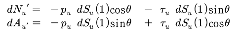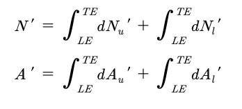Normal force 와 Axial force는 날개의 윗면, 아랫면에 따라 다르다. 이는 다음과 같은 식으로 표현할 수 있다.