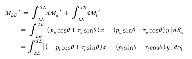 이렇게 나온다. 물론 이것도 날개의 앞에서 뒤까지 적분하면 총 모멘트를 구할 수 있다.