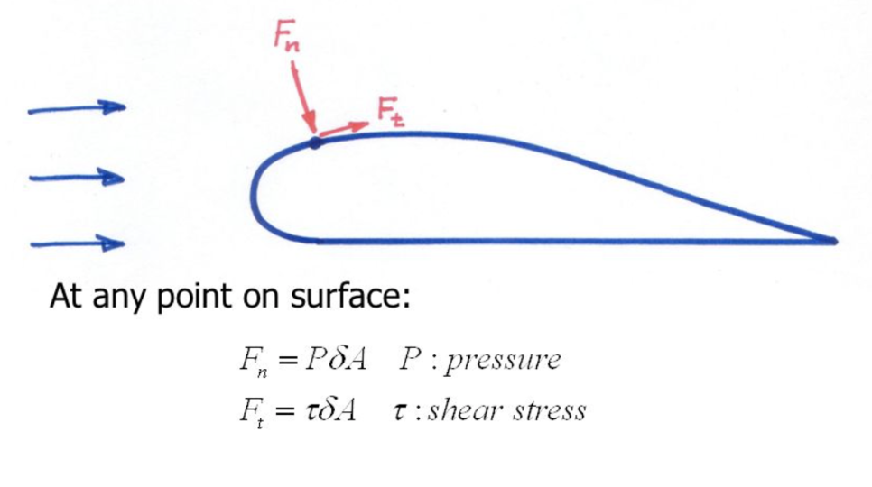 Pressure와 Shear stress의 분포를 물체의 표면에 따라서 적분으로 표현하면 resultant aerodynamic force R 혹은 moment M으로 나타난다.