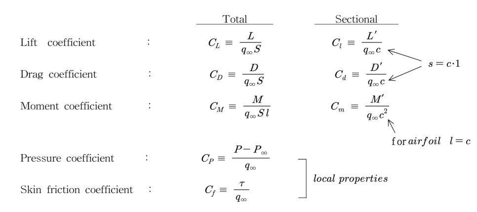 정리하면 날개 전체에 관해서 다음과 같은 힘을 얻을 수 있다.