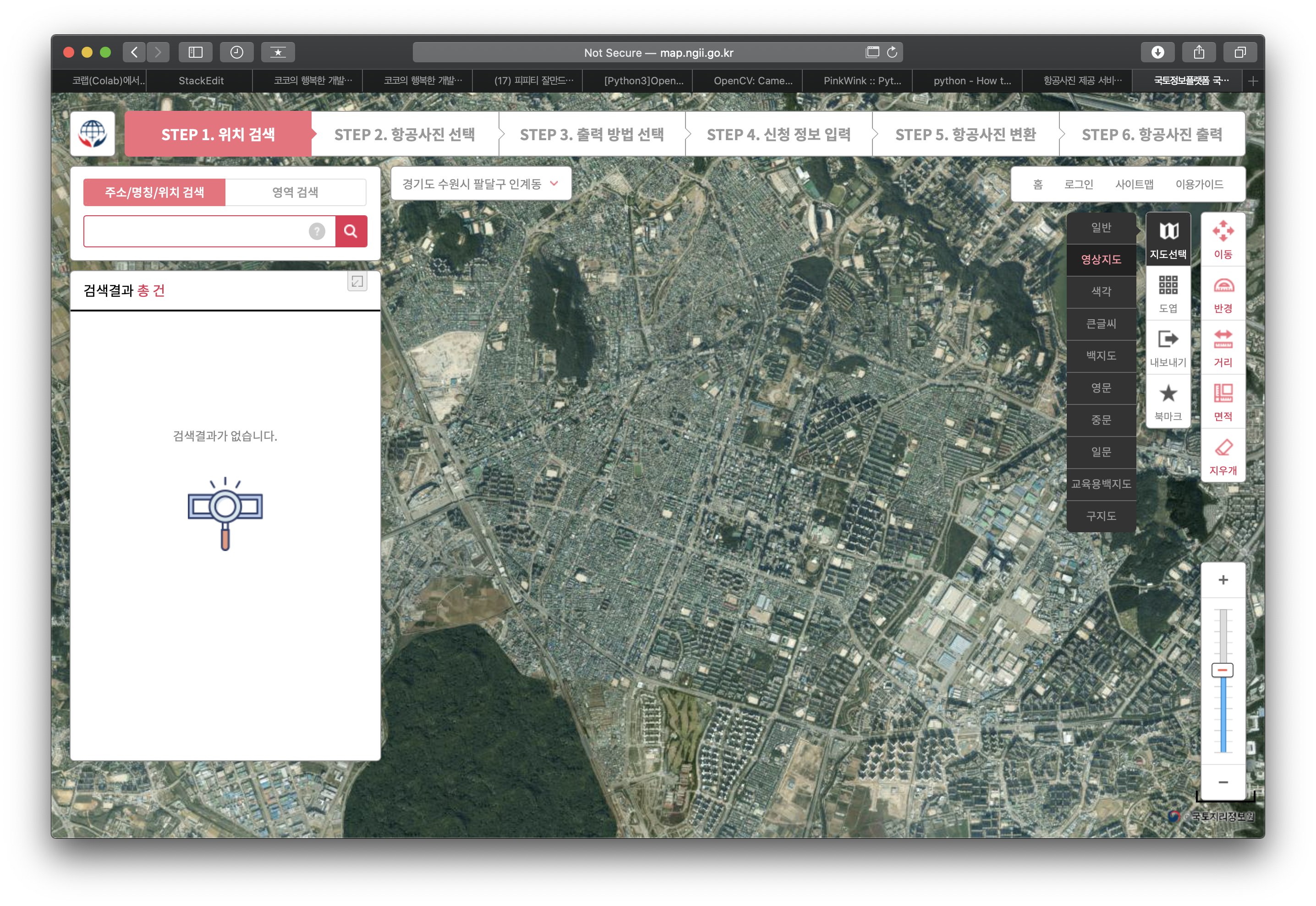프로젝트의 목표 중 하나로 항공사진으로부터 도로데이터를 추출하는게 있는데.. 일단 항공사진을 구해야할것아닌가?