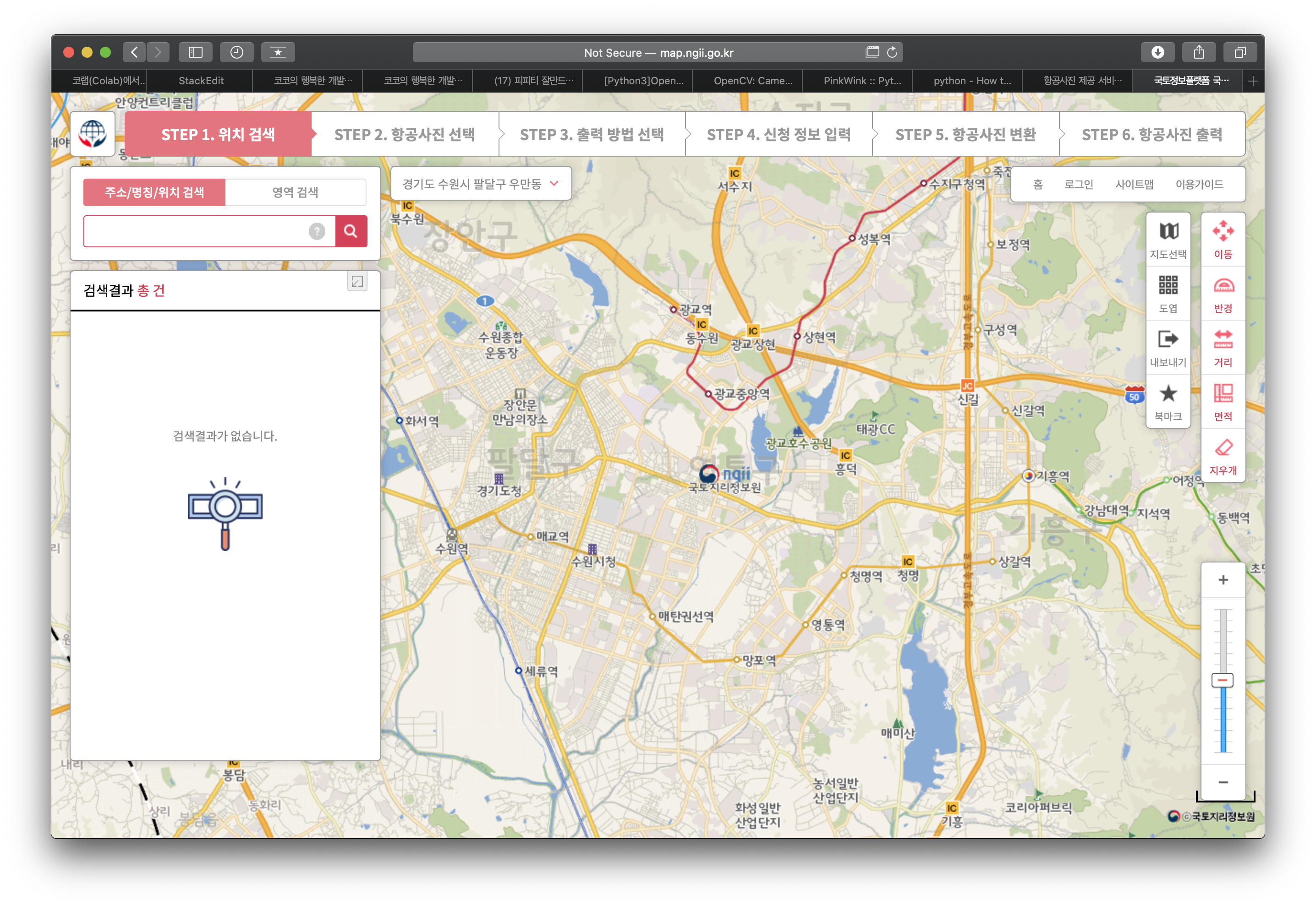 항공사진 간편출력 버튼을 눌러주자. 누르게 되면 다음과 같은 모습을 볼 수 있다.