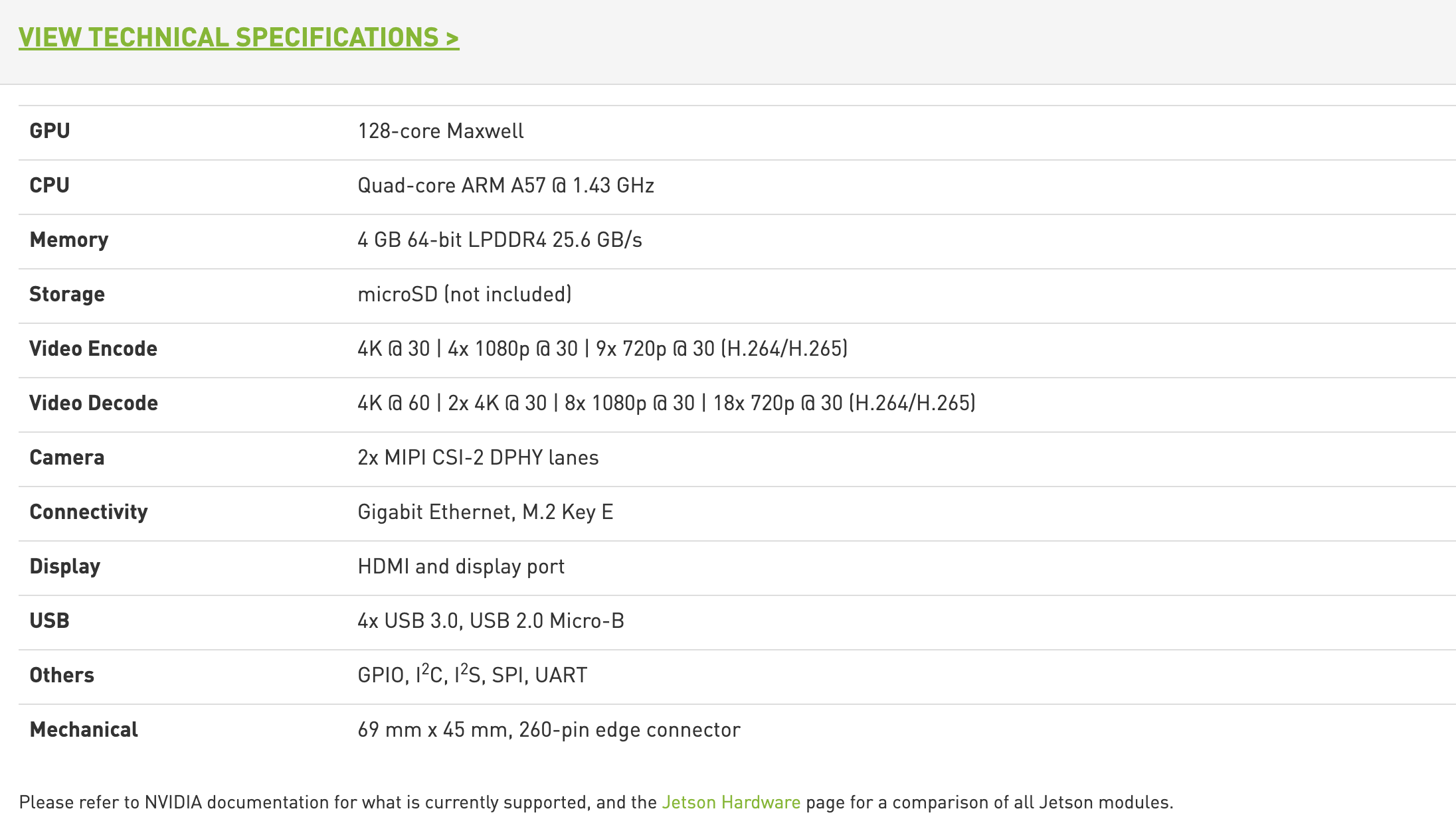 사양은 다음과 같다. 128 맥스웰 코어를 탑재하고있으며 Storage는 포함하고있지 않다. 즉 Microsd를 새로 사야한단 이야기... 그래서 결국 64기가 모델로 구매했다. 그리고 이 제품은 5V 2A로도 구동이 가능하지만, 머신러닝을 실행한다면 10W의 전력으로는 부족하다는 이야기가 있어 5V 4A 어댑터를 구입하게 되었다.