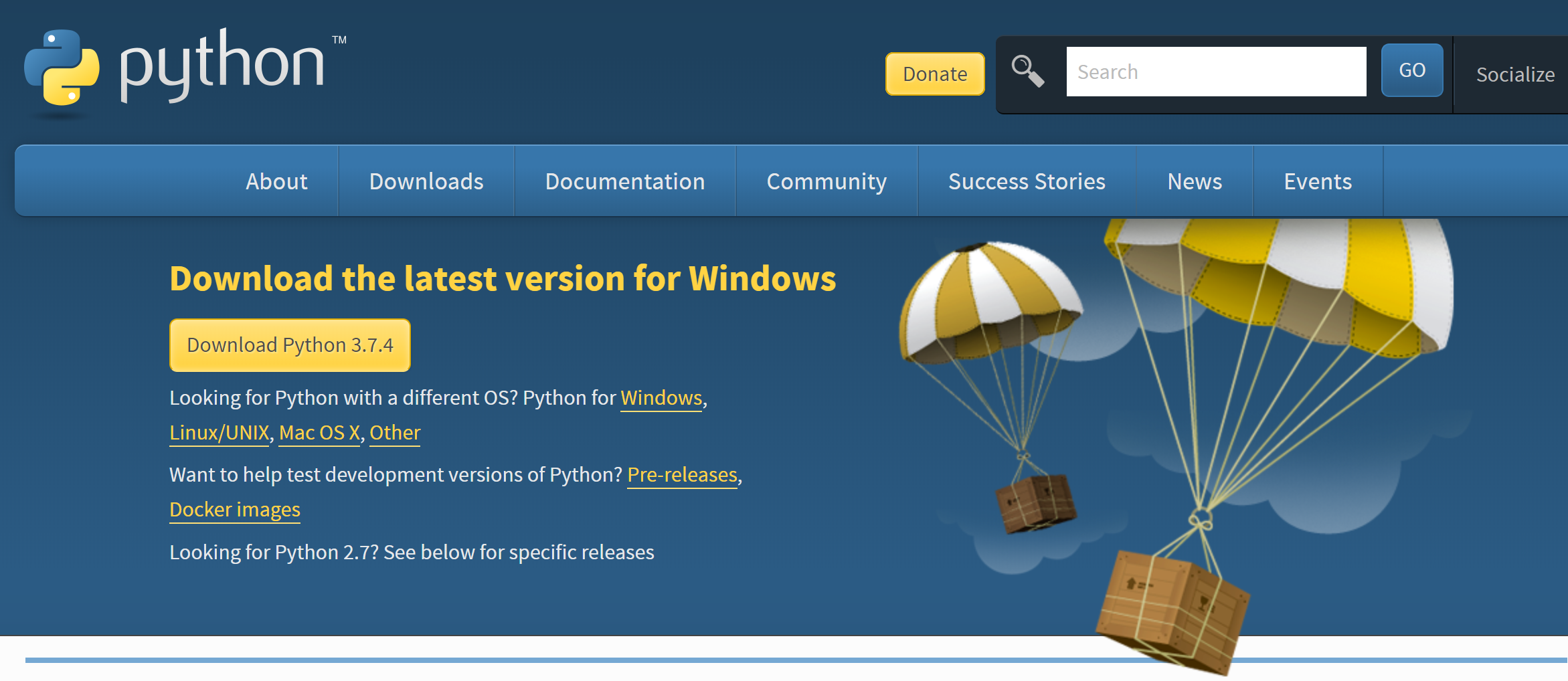 여기서 Download Python 3.7.4를 클릭해준다.