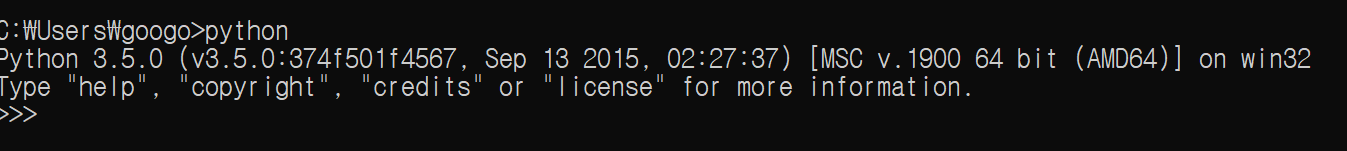 이런 창을 확인할 수 있다. 그리고 cmd를 실행한 후 python을 타이핑하면