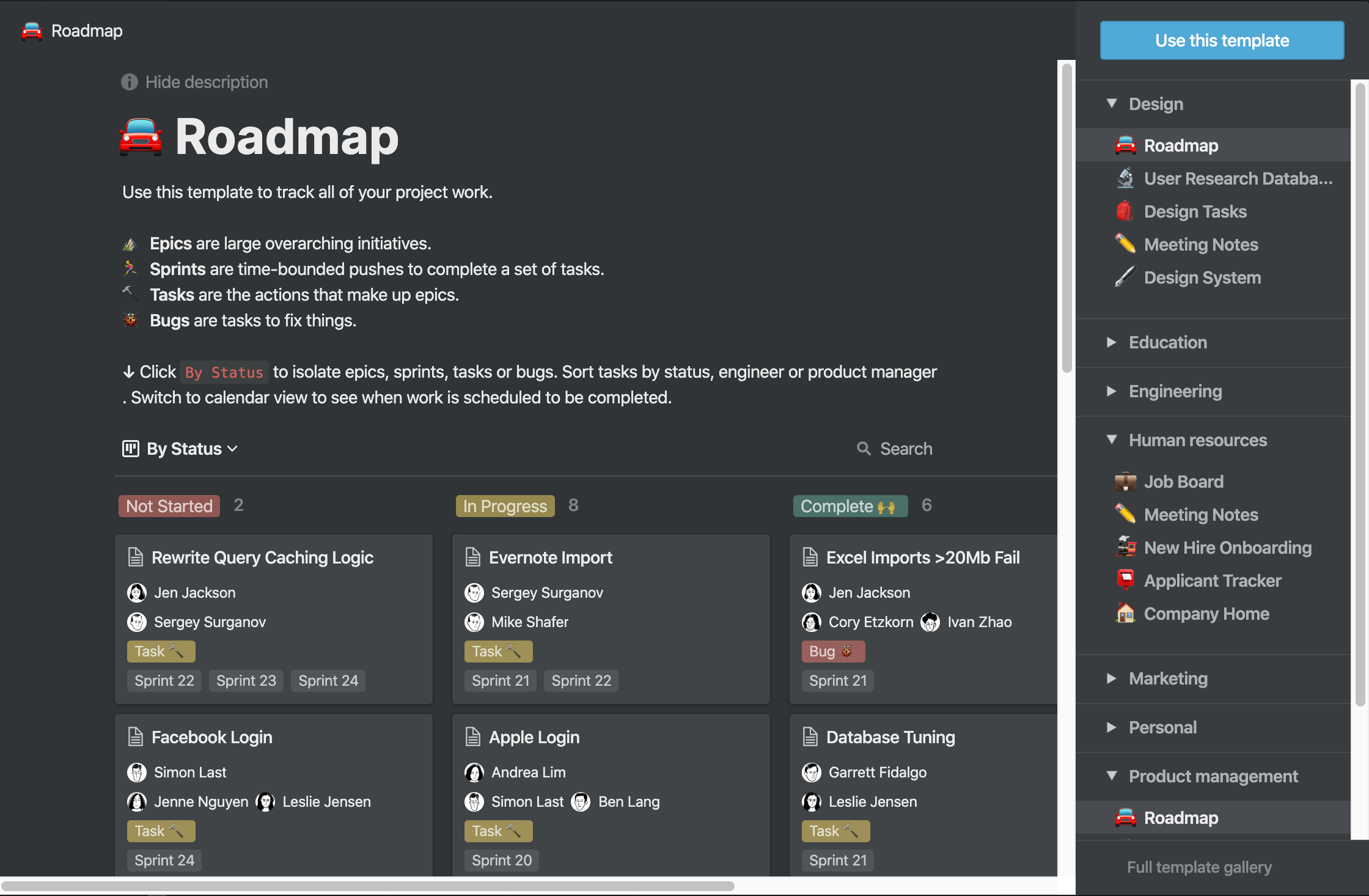 그리고 쓸 만한 템플릿을 노션 안에서 찾아 사용할 수 있다. 물론 처음 입문한다면 사용자는 수많은 영어로만 된 글을 보게되고(아직 한글화가 되지 않았다) 기능이 너무 많아 마치 태평양을 표류하는 작은 배에 탄듯한 기분이 들 것이다.
