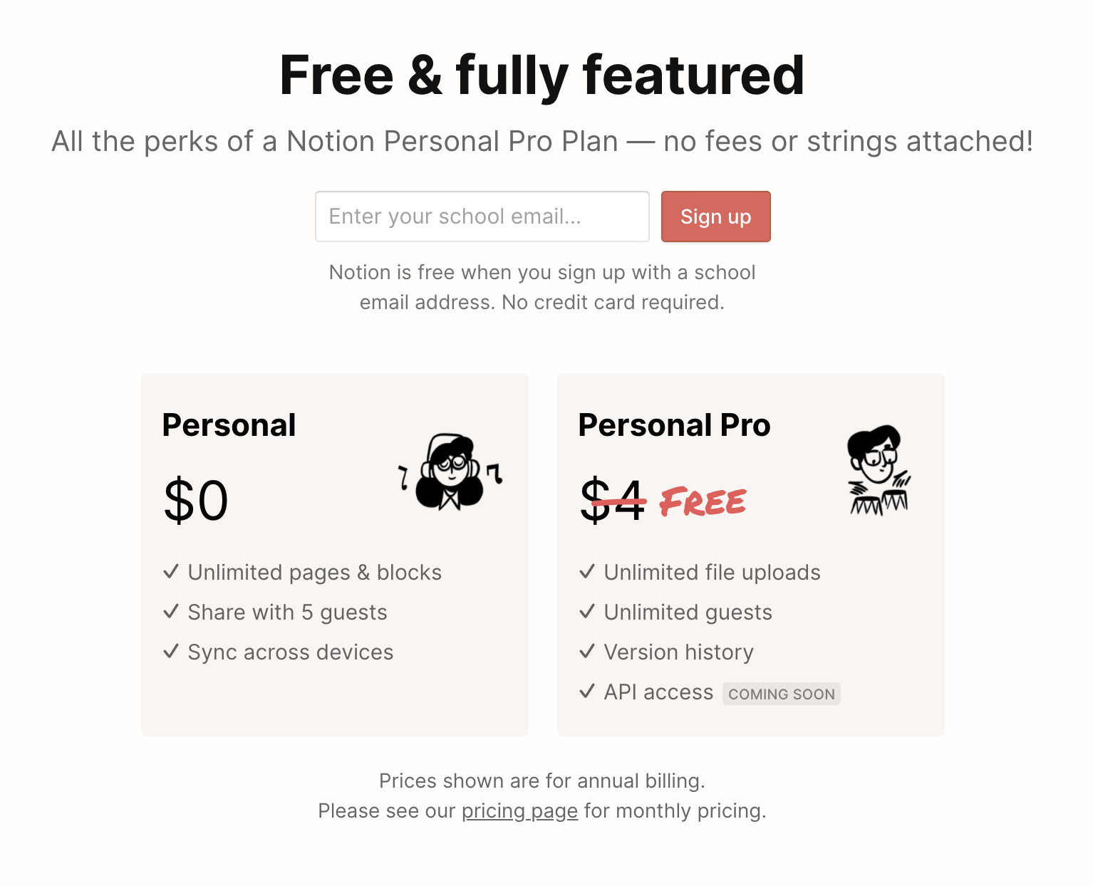 현재 노션은 개인에게도 더 많은 기능을 제공한다고 발표하였다. 그래도 학생에게는 더 좋은 혜택이 있다.