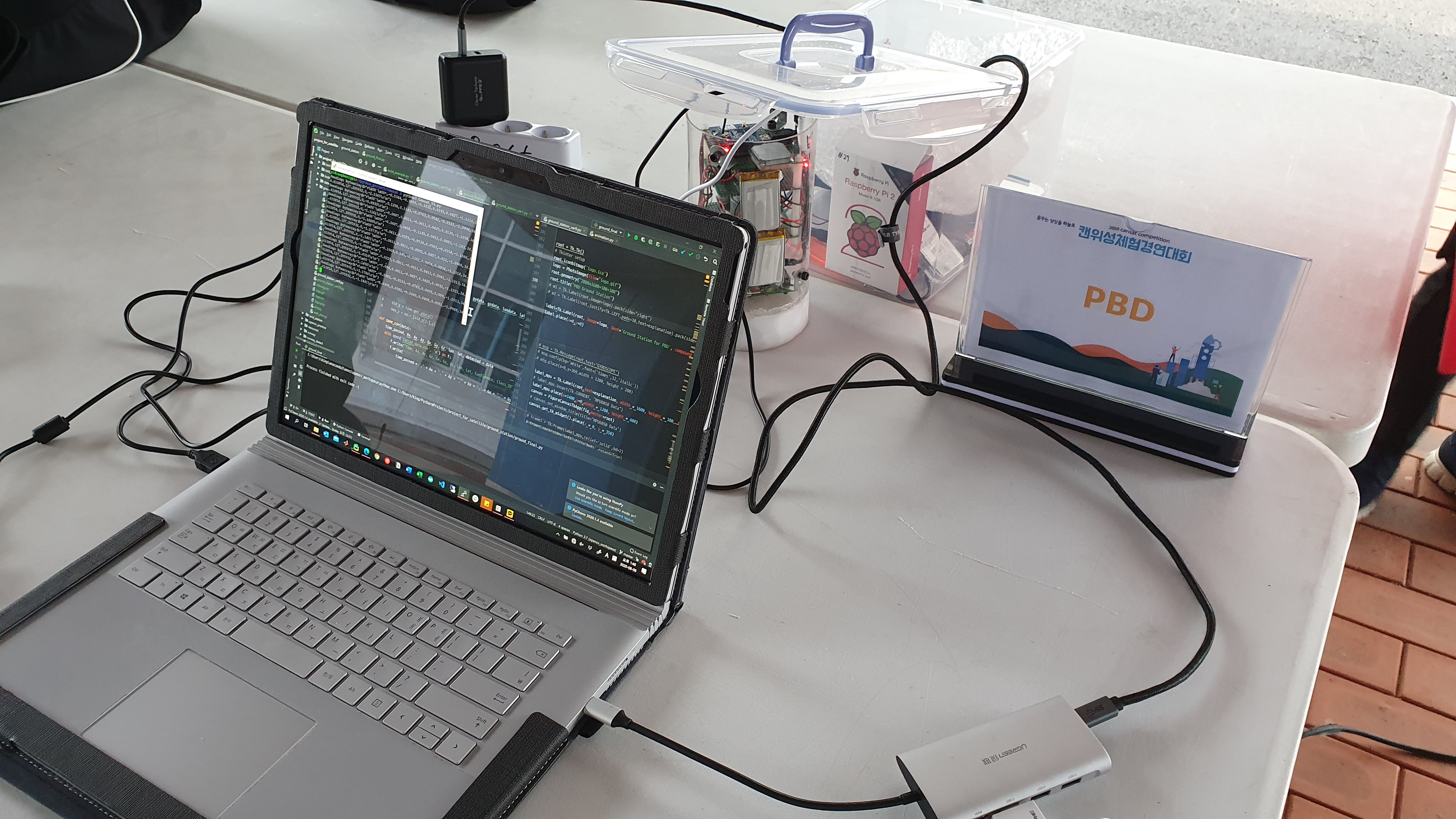 지상국은 좌측사진의 대회측에서 제공하는 소프트웨어가 있고, 우측은 제가 직접 만든 지상국 소프트웨어입니다. 기존 계획은 대회측에서 제공한 소프트웨어를 사용하고자 했으나 대회시작 전 막바지에 지상국을 세팅하면서 여러가지 어려움에 봉착하여 새로 만드는게 시간절약을 할 수 있다 생각하여 제작하였습니다.