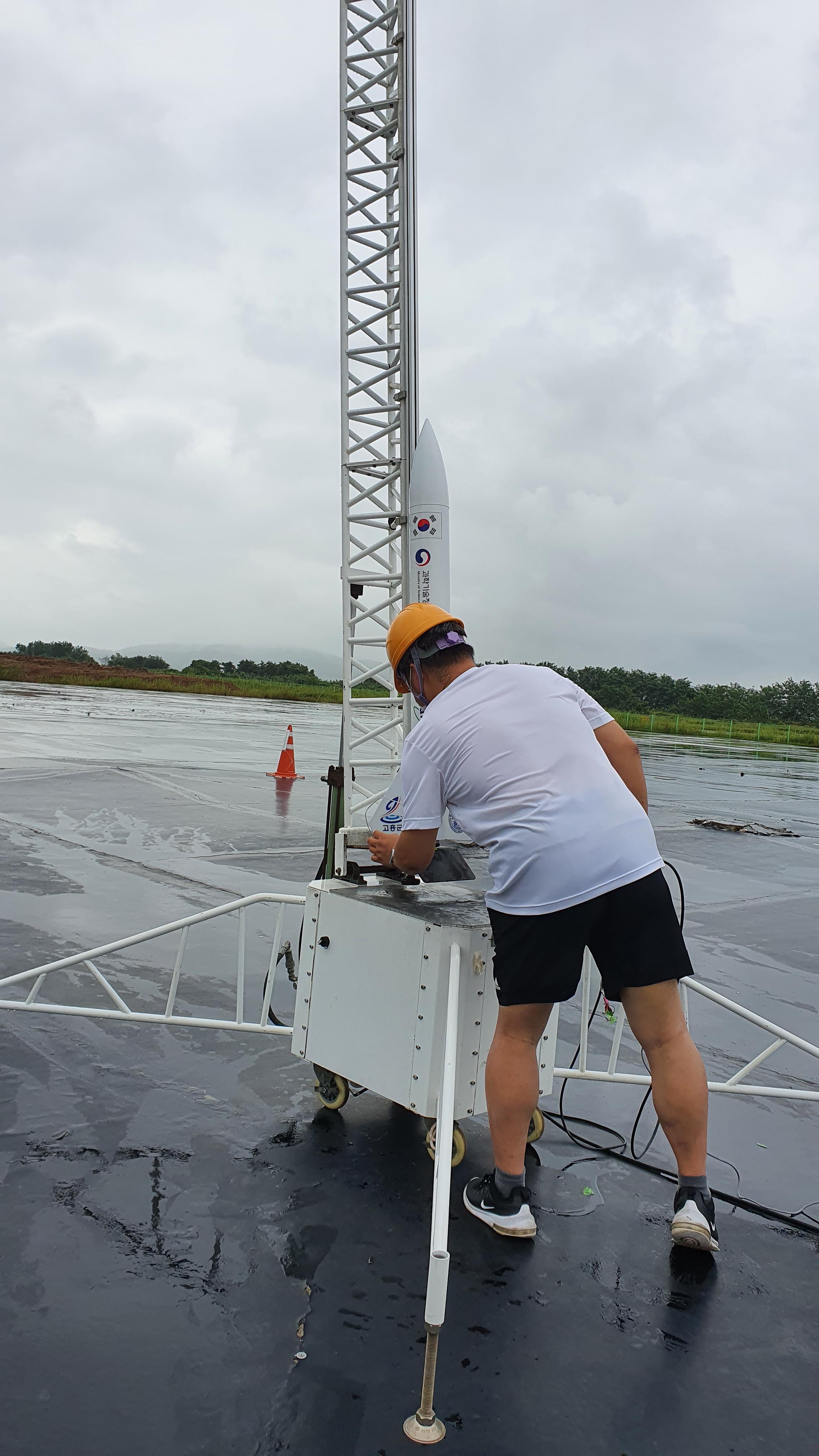 그다음에 로켓에 캔위성을 탑재한다음 관계자분께서 로켓 발사 세팅을 진행합니다.