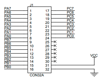 PA0~PA7을 LED의 극성에 맞게 연결하고 32번 즉 Ground부분을 LED의 끝단에 연결한다.