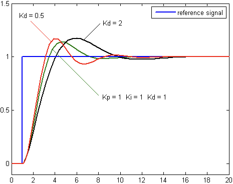 $K_p,K_i,K_d$는 모두 음수가 아닌 항목이다. 일반적인 경우 $K_i, K_d$는 $\frac {K_p} {T_i}, K_pT_d$로 각각 표현한다.