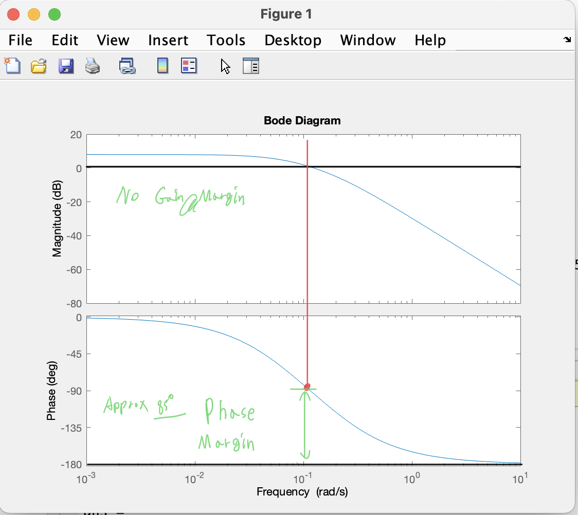지금까지 Bode Plot을 알아본 것은 Gain Margin과 Phase Margin을 알아내기 위함이다. 그렇다면 Bode Plot을 보고 어떻게 Gain Margin과 Phase Margin을 알아낼까?
