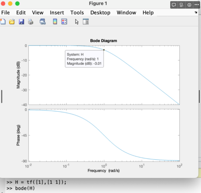 break point에서 -45도 지점을 지나며, phase 0에서 시작해 -90에서 마무리 된다.