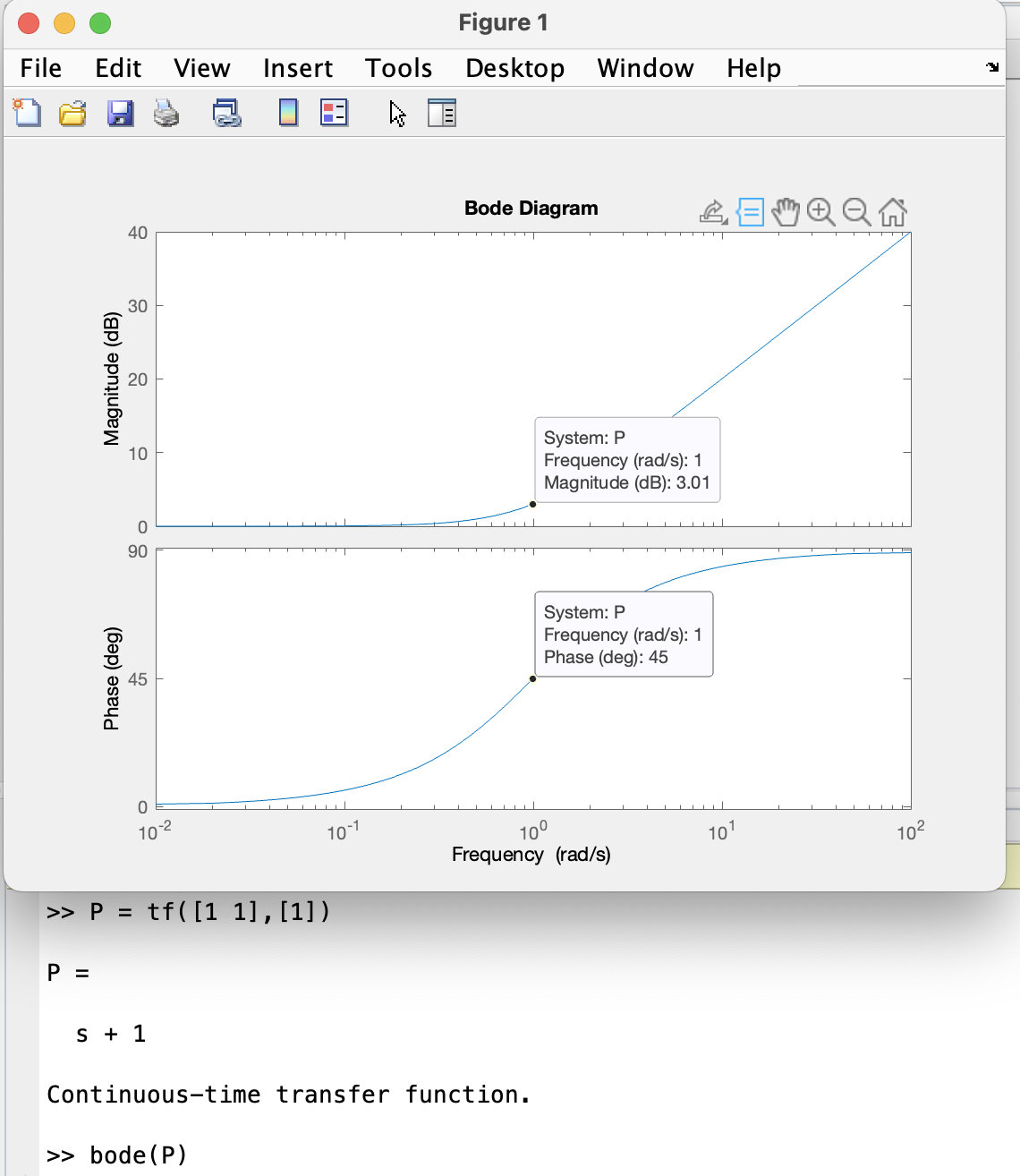 Zero(영점)의 Bode Plot을 보면 break point $\omega = 1$ 지점에서 3dB씩 증가하는 것을 볼 수 있다.