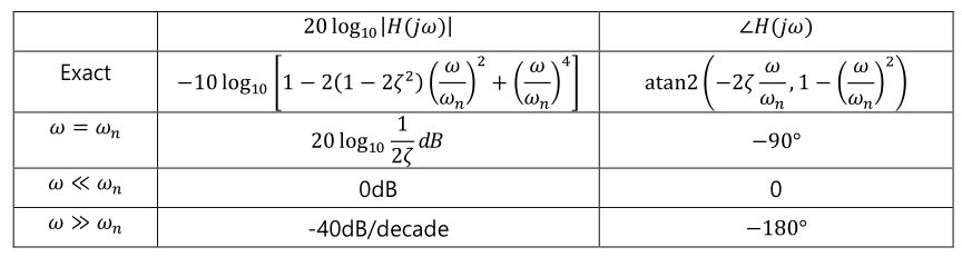 $$ H(s) = \frac {\omega_n^2} {s^2 + 2\zeta\omega_ns+\omega_n^2} $$